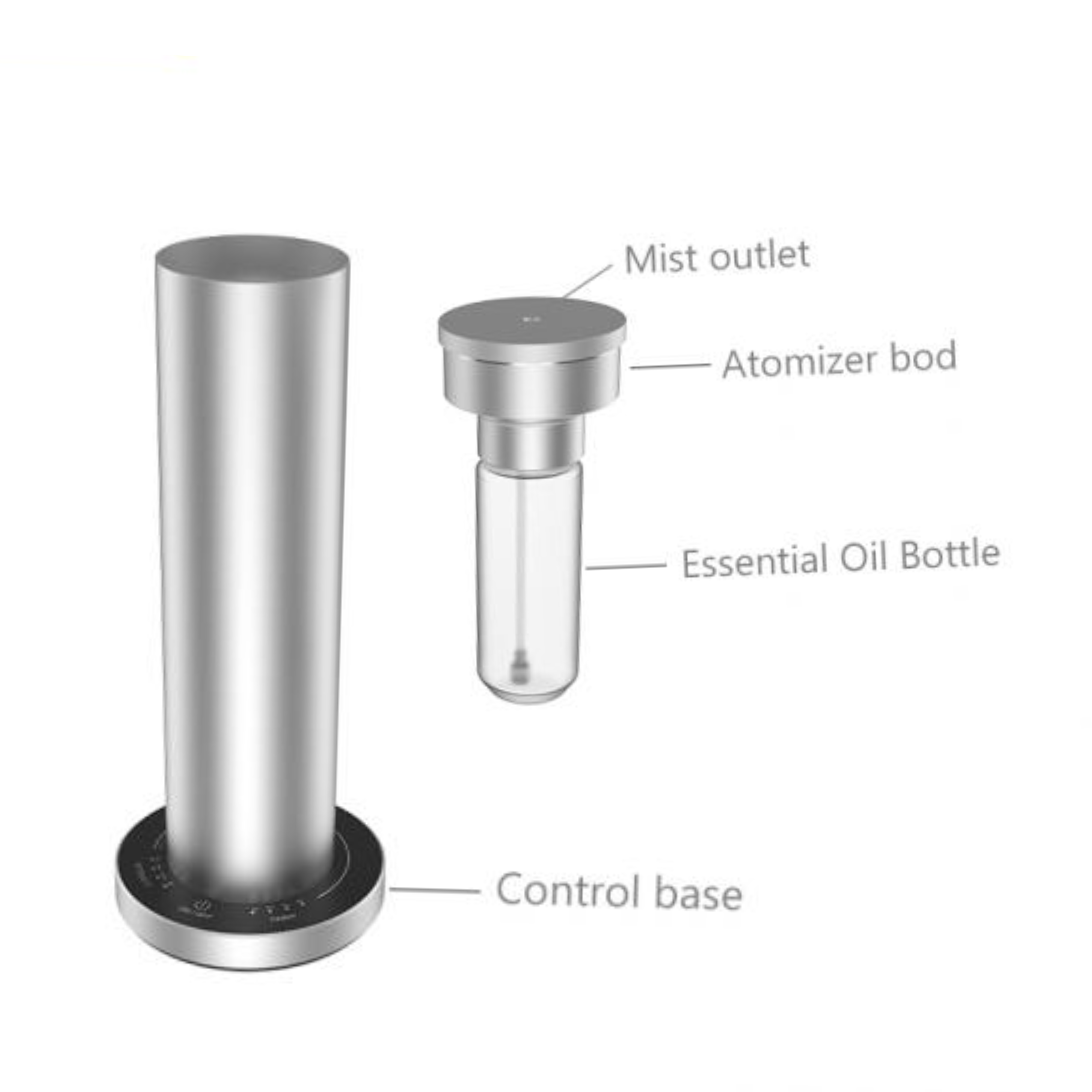 High-end aroma diffuser A300C adopts fluid dynamics & siphon principle, to make the mist as small as micron particle, which makes scent to spread evenly and scent long-lasting in the space. This scent diffuser can be controlled by touch panel and Bluetooth. The device built in 100ml plastic bottle lasting 30+ days, and the scent can spread to the space of 300m³. Plug-in atomizer core and seal ring are easy to replace. The aluminum alloy shell makes the device look more elegant and atmospheric, which make it widely used in showroom, office, coffee shop, home, hotel, etc.