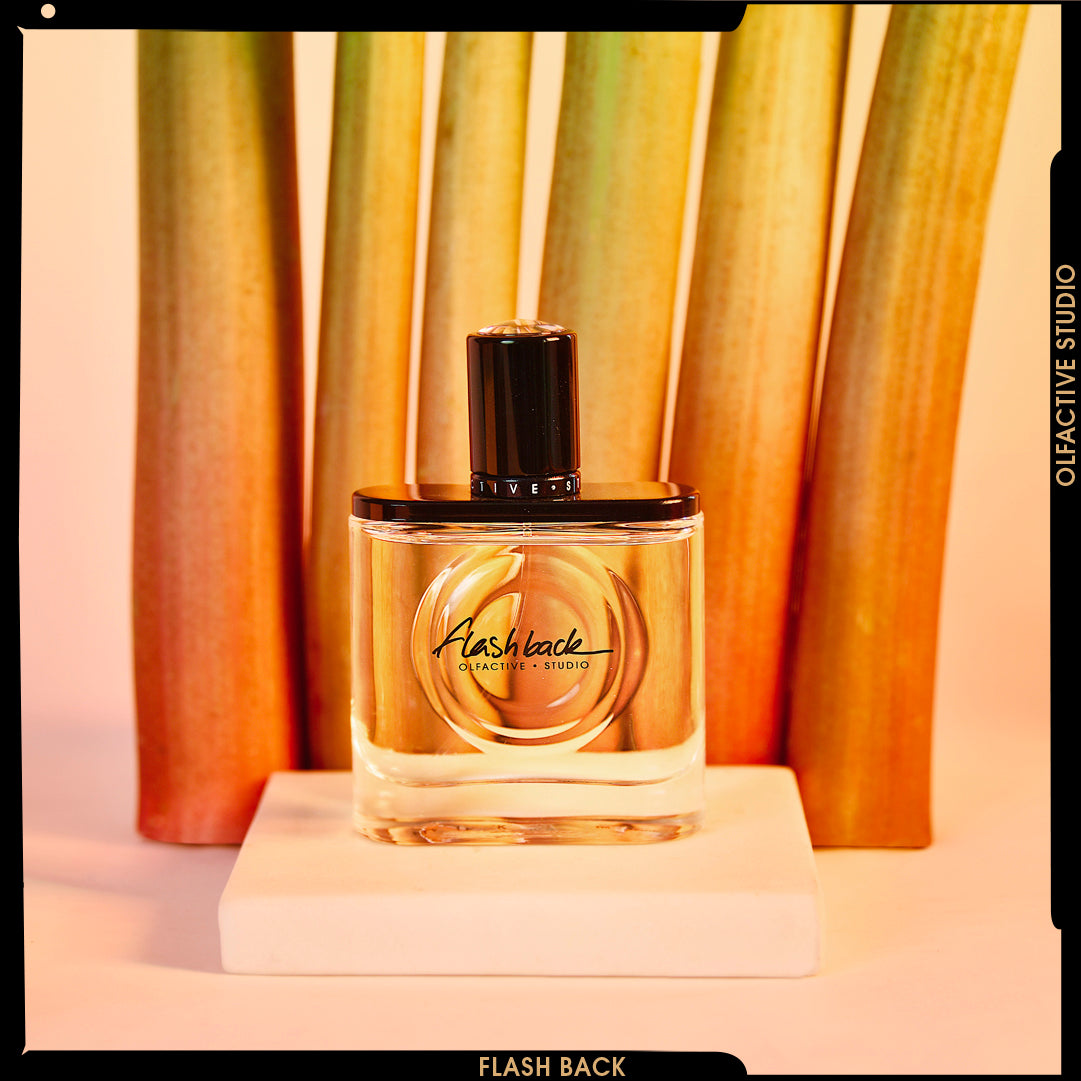 A memory in motion and in action: that is also the magic and the raison d’être of Flash Back. A tangy and vibrant fragrance, Flash Back is an olfactory reminiscence: tangy and slightly green rhubarb mixed with hesperides revives an enveloping childhood smell: that of rhubarb tart. A base note of vetiver and cedar give it woody sensuality. Unisex fragrance